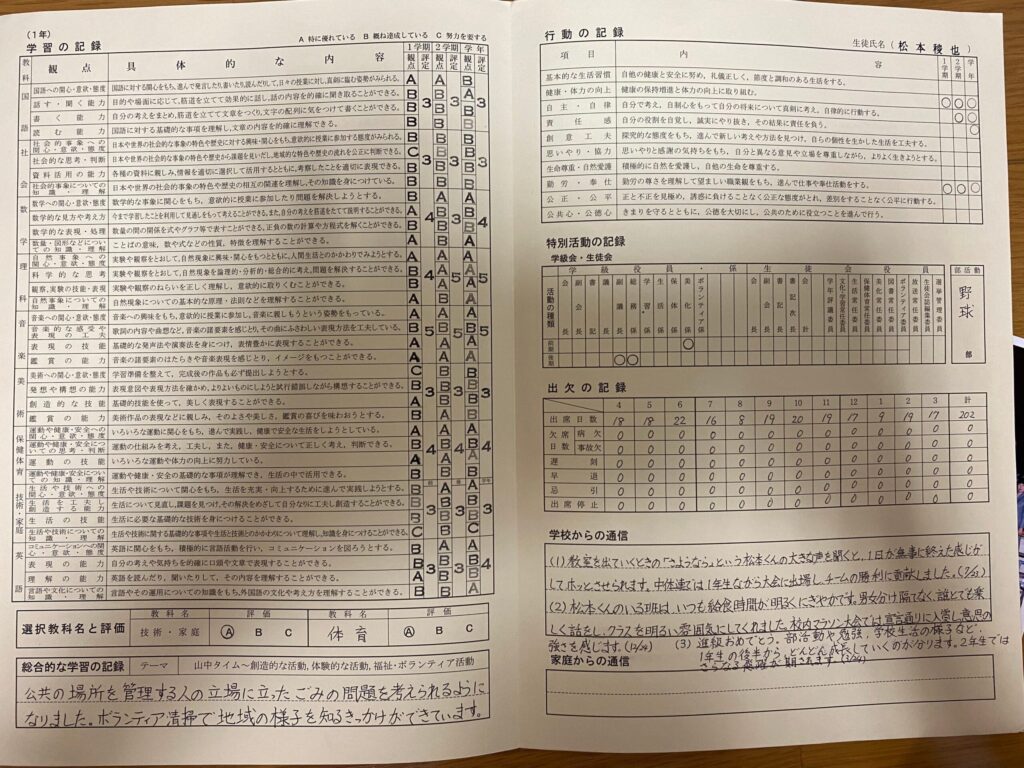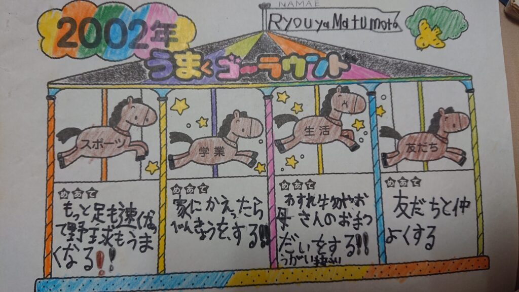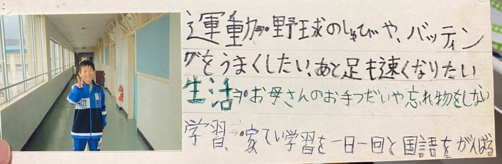 学校でつくったであろう目標が「野球」「母の手伝い」「国語の勉強」