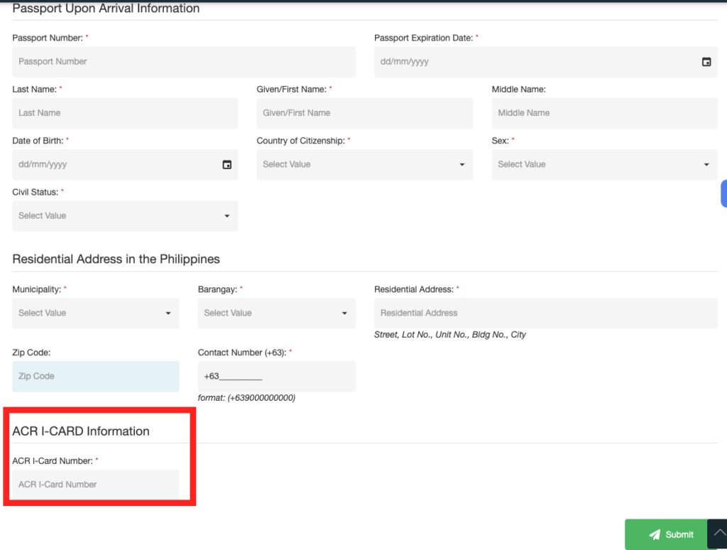 私のケースは、オンライン申請を進めたら最後に ACR I-Card番号入力が出てきて止まり、結局BI窓口に行ったよ。