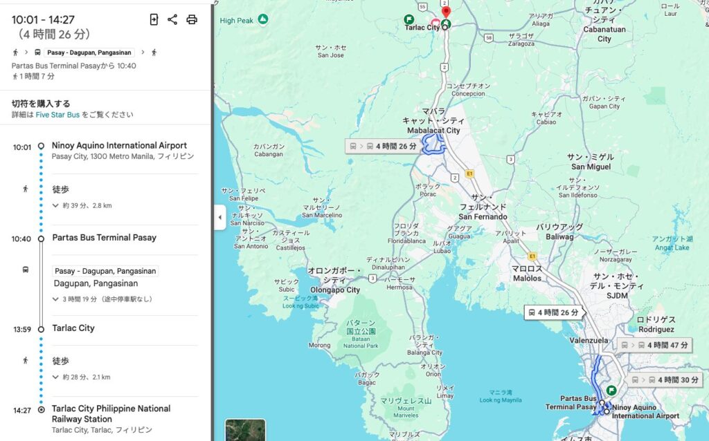 - First North Luzon Transit(マバラカット周辺から):約1時間前後目安